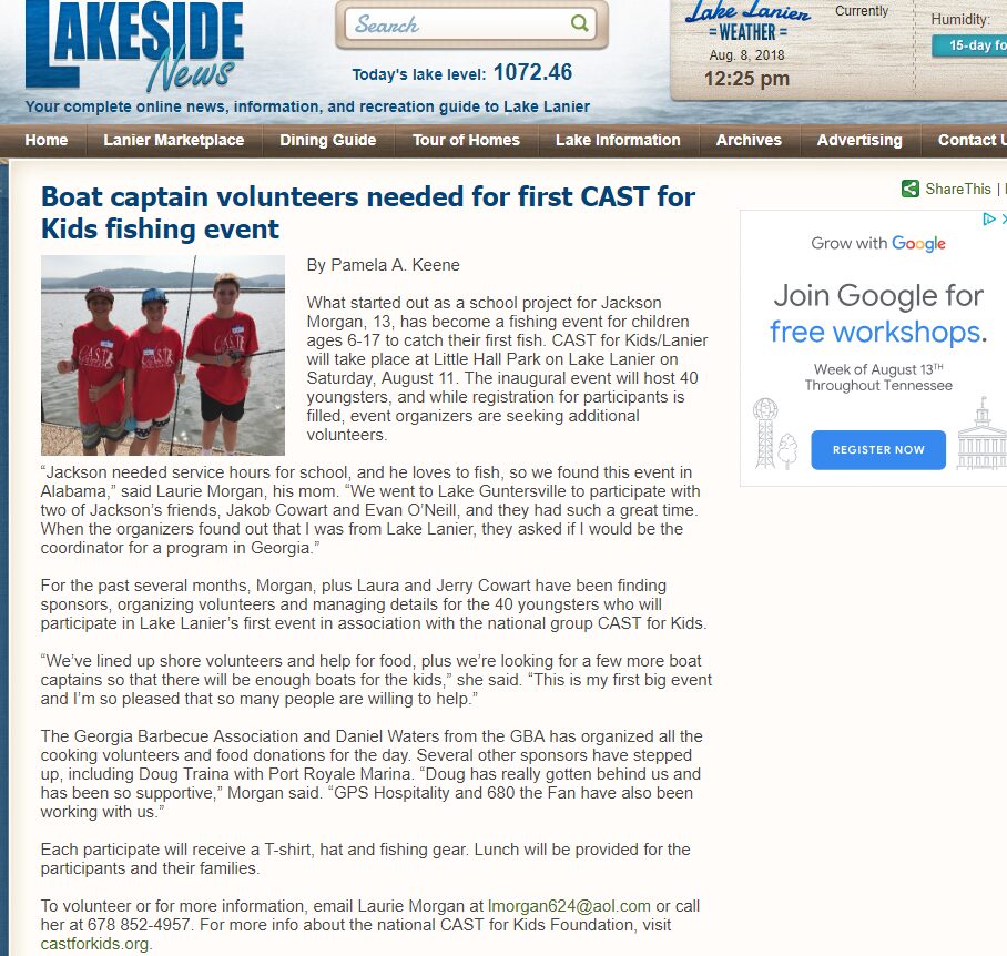 C.A.S.T. for Kids Buffalo Springs Lake event can use volunteers to make this annual event a success